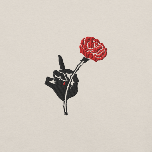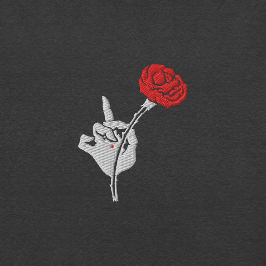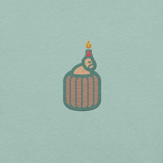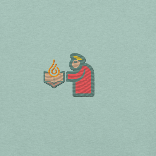 Philosophy inspired designs featuring a minimalistic, embroidered, figure.