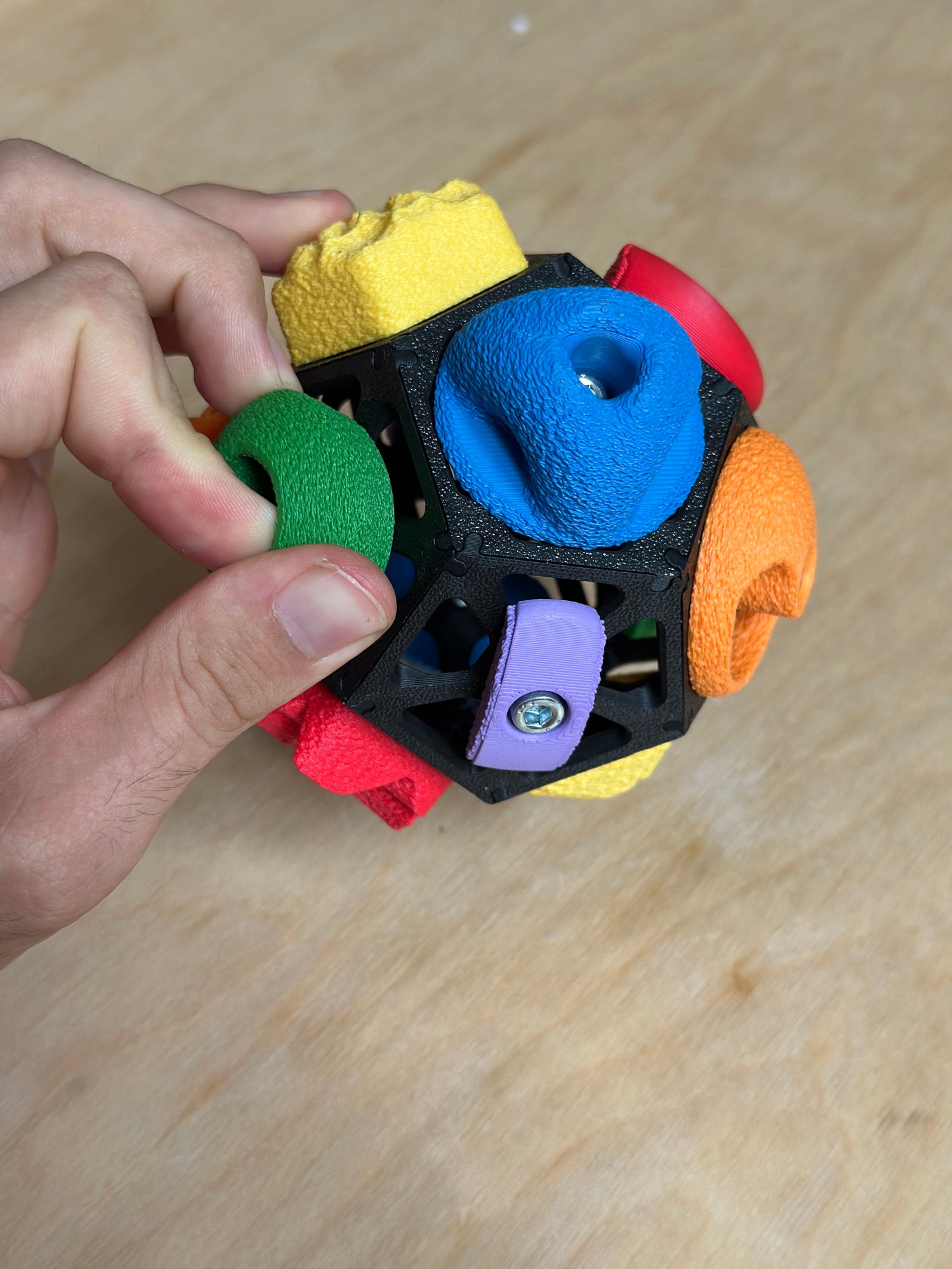 The Beta Ball is almost fully 3D printed, except for the nuts and bolts, allowing for infinite possibilities in personalization of color, style, and difficulty.